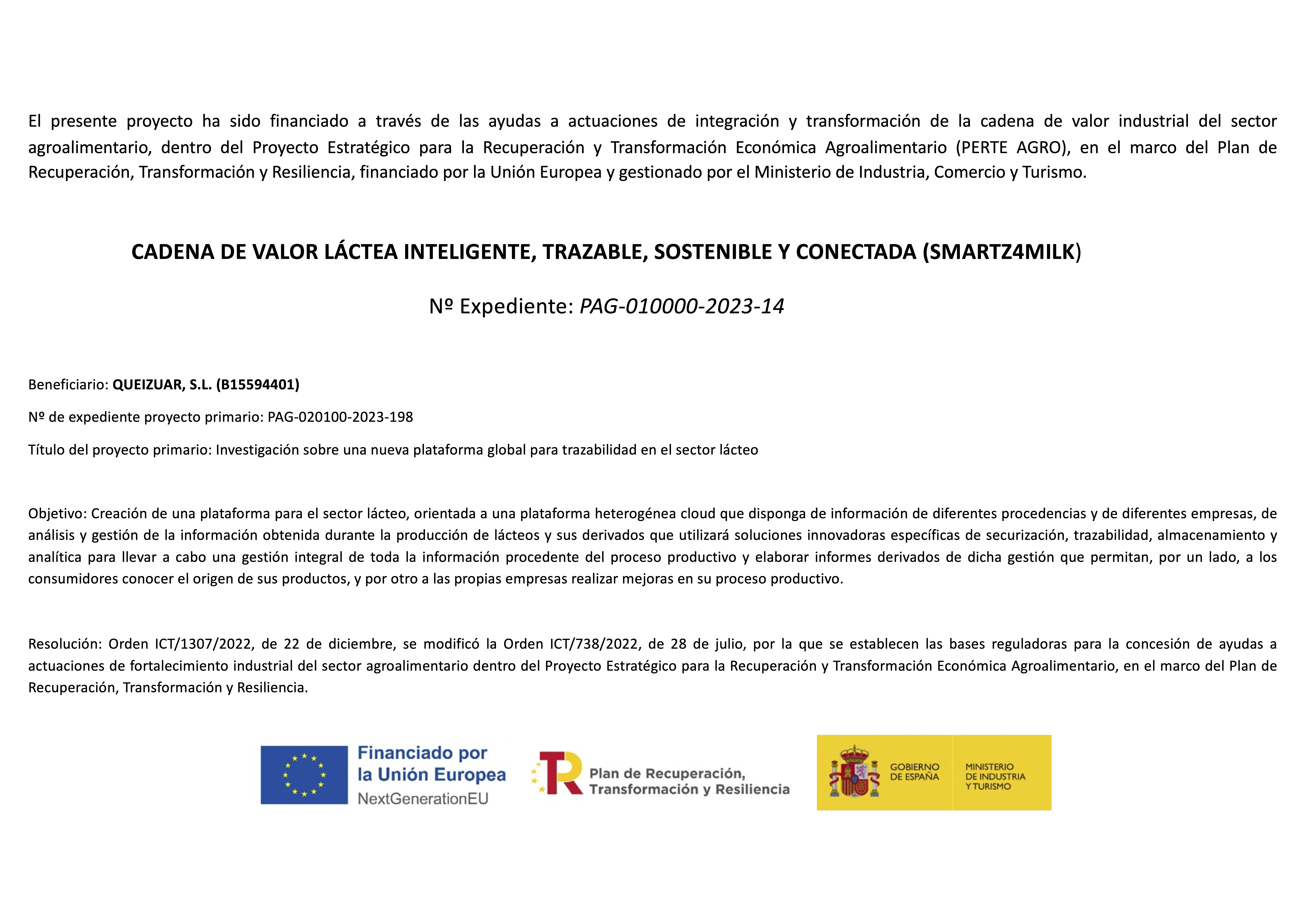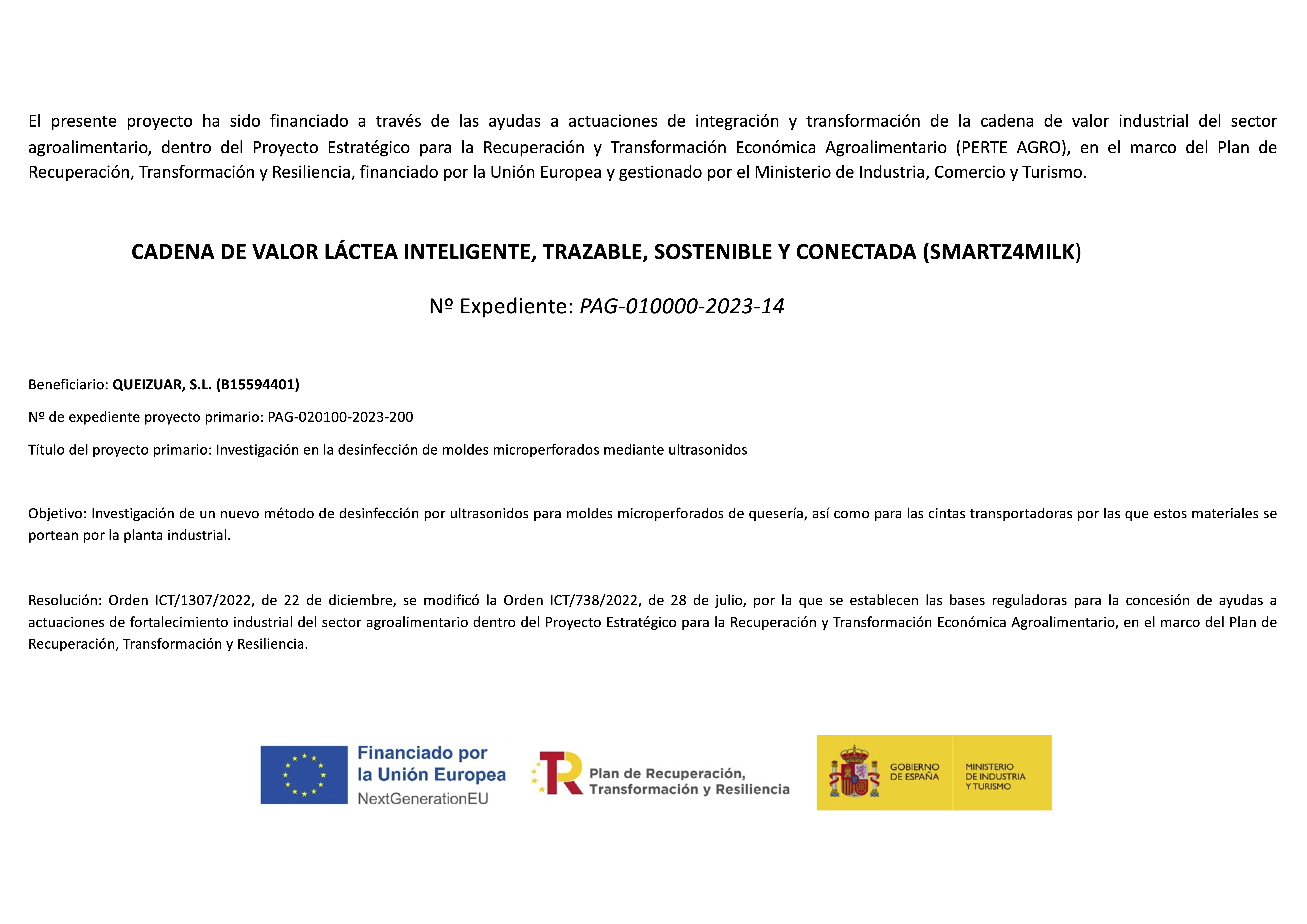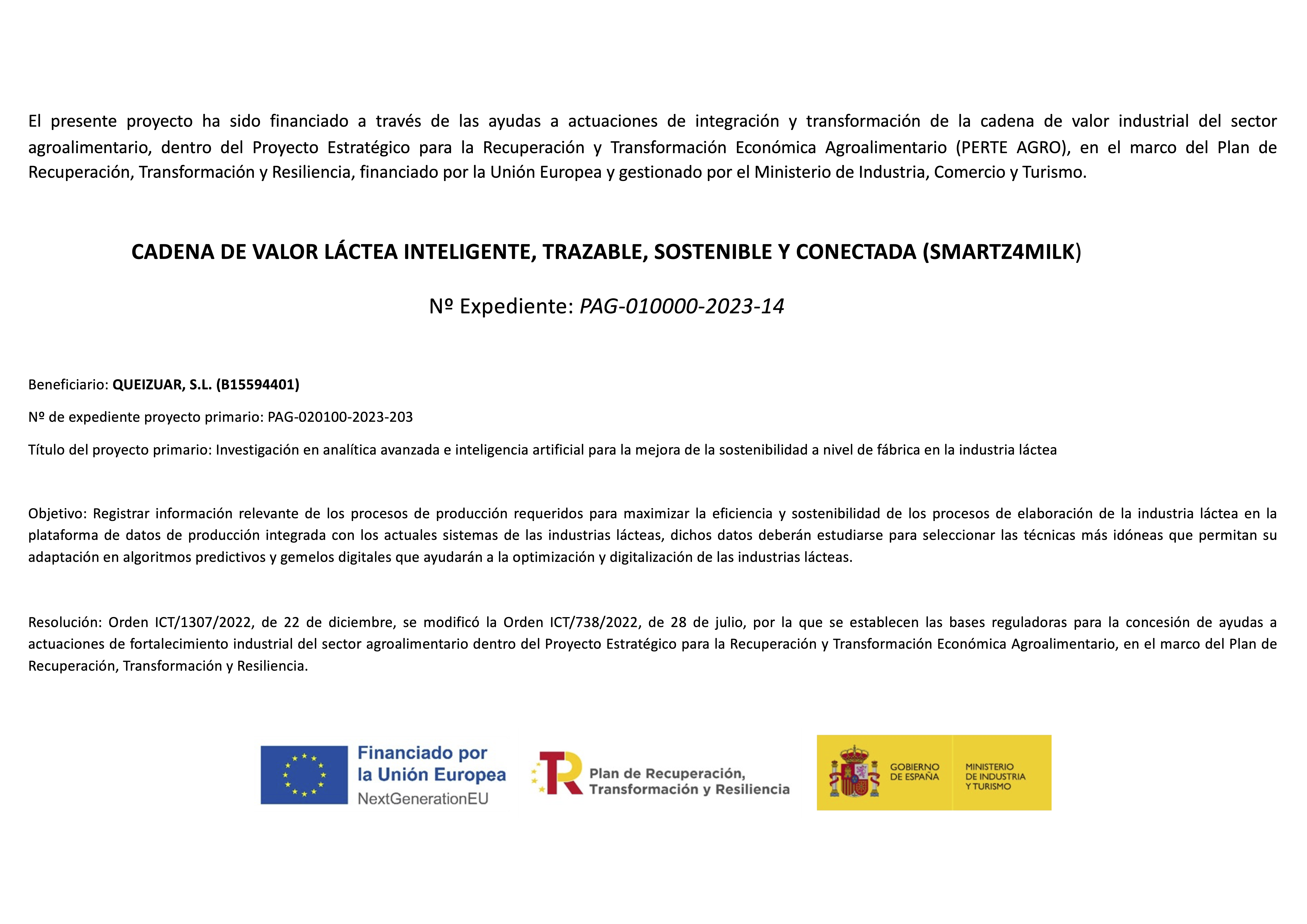En el caso de QUEIZUAR S.L. se contó con la colaboración de AINIA centro tecnológico para la creación e implantación del sistema piloto.