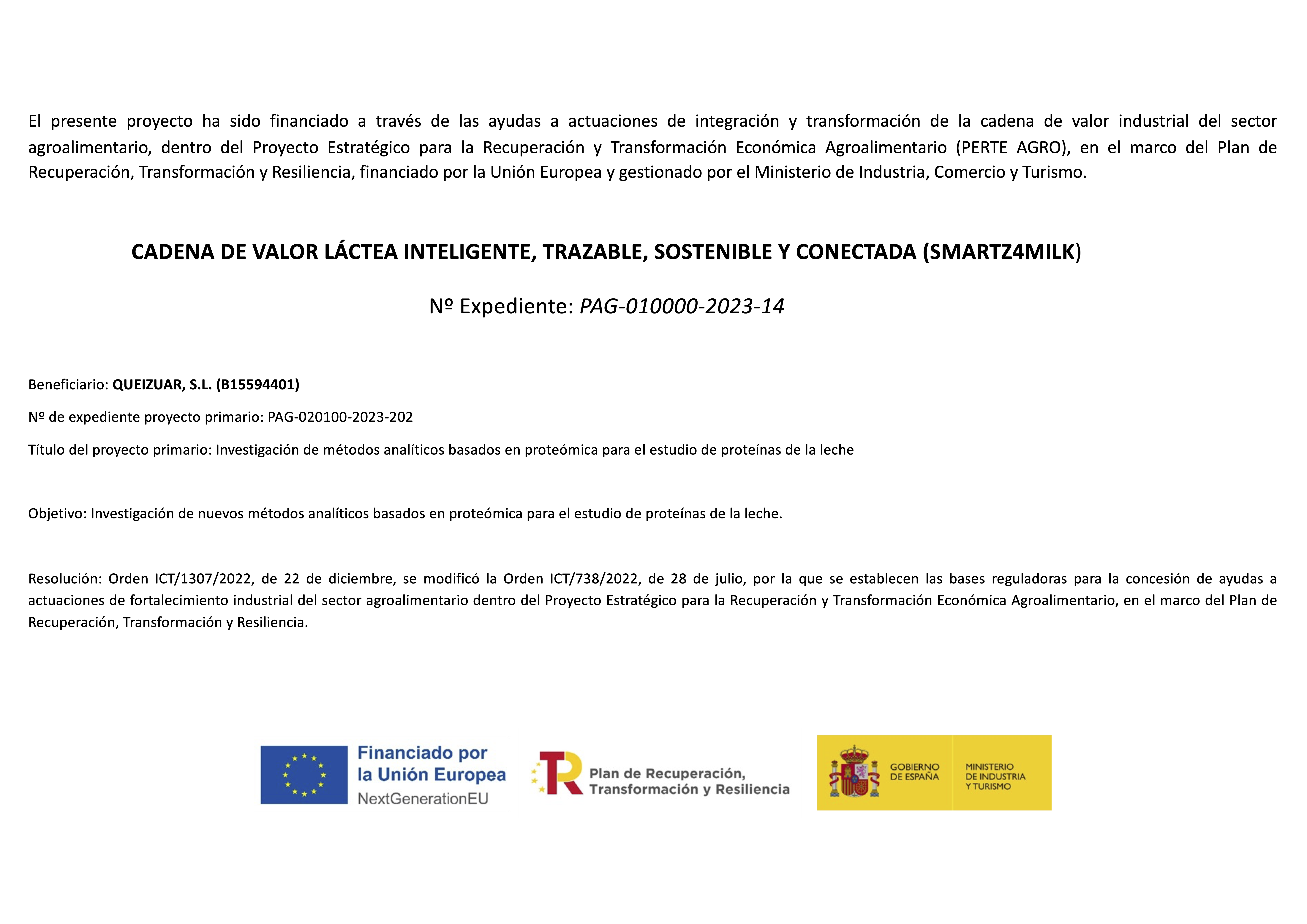 - Investigación de métodos analíticos basados en proteómica para el estudio de proteínas de la leche (PAG-020100-2023-202)
